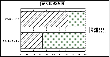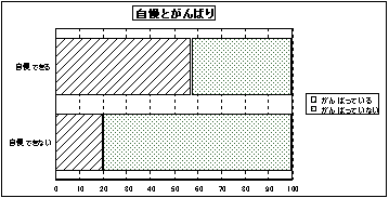 「自慢できることがありますか」と「がんばっている」との関係(質問番号8と9の関連について)の結果は、次の通りである。