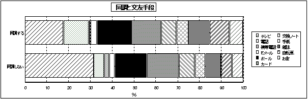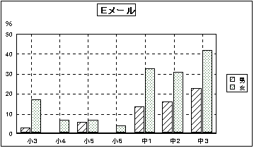 直接的なコミュニケーションの手段としては「交換ノート」「電話」「手紙」などで、この点は男子に比べて女子の方がはるかに数値が高い。これは女子の方が精神的は発達が早い時期であると共に、男子が「直接的な対話」によるコミュニケーションが主体であるのに比較して、女子は上記のような「媒介物」を介してコミュニケーションを成立させようとするためであろう。しかし、携帯電話やEメールは、小学校段階ではまだ少数である。