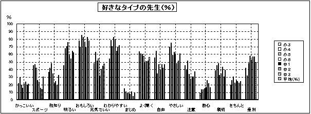 (質問番号14)「あなたの好きなタイプの先生はどれですか?」の結果は、次の通りである。
