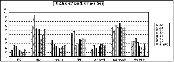 ![]() 先生との関係は、「明るい」「面白い」「元気」