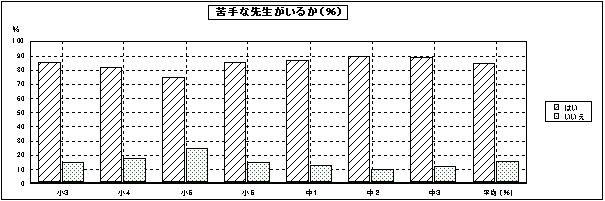 (質問番号15)「あなたにはにがてなタイプの先生がいますか?」の結果は、次の通りである。